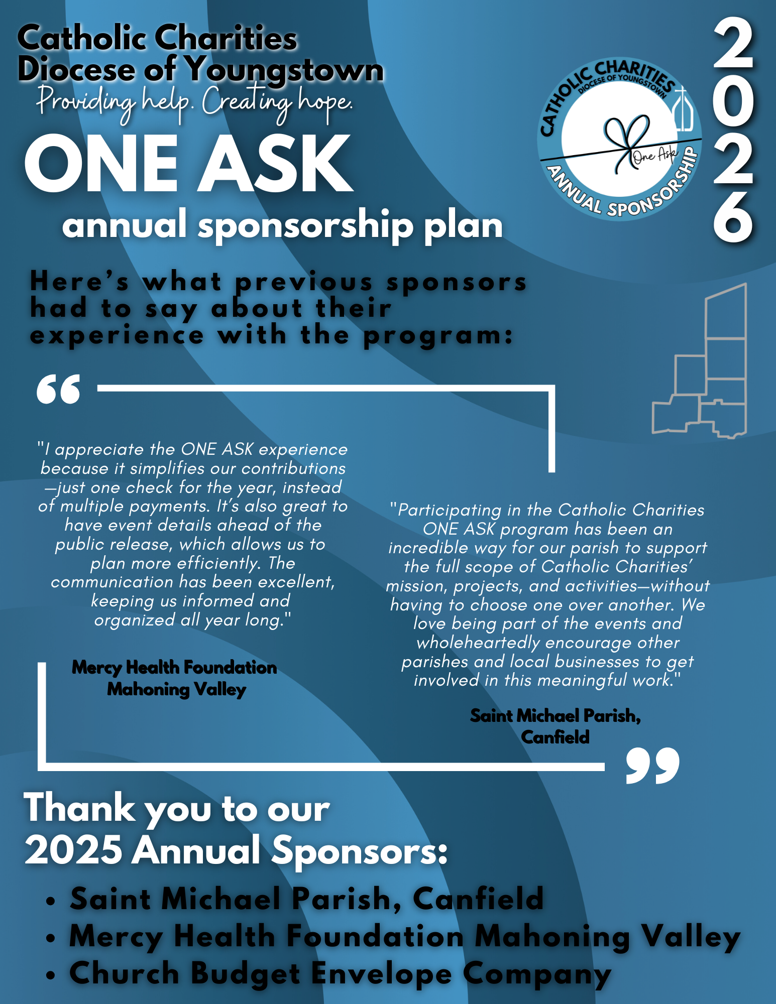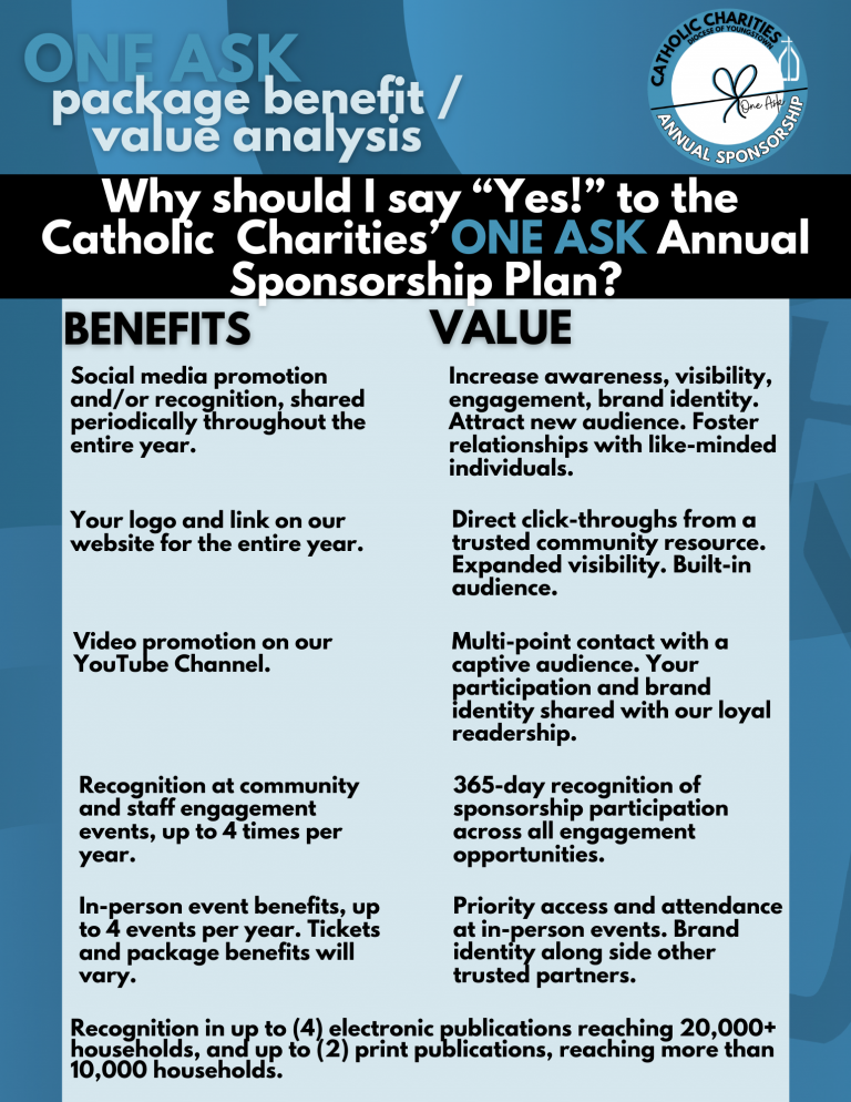 - In-Person Event Reach: Sponsors were prominently featured at multiple in-person events, reaching over 1,575 attendees across Voice of Hope, Men Who Cook Ashtabula, Bocce Tournament, Chefs for Charity, Lunch & Learn sessions, Social Hour with the Bishop, and Breakfast with the Bishop.