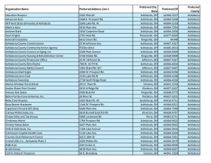 VOH – Potential Donors and Sponsors – Ashtabula County